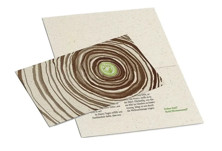 Laut einer Befragung, die handwerk magazin von GFF-Herausgeber Holzmann Medien im Dezember 2017 veröffentlichte, kümmert sich in 53 Prozent der Handwerksbetriebe der Chef um die Weihnachtspost. Dabei legen Unternehmer Wert auf ein ansprechendes Motiv, eine gute Platzierung des Logos und den Druckservice. Die Attribute haben Sylke Schröder, Inhaberin des Briefstudios, und Grafikdesignerin Maria Gottweiss (Foto) bei der Entwicklung ihrer Weihnachtskarten berücksichtigt. Zur Wahl stehen die Motive Feuer, Wasser, Holz, Erde, Metall, Luft. Der Text der Holz- und Erdemotive verkündet eine christliche Botschaft. Das Feuer-Motiv eignet sich zur Positionierung als Ausbildungsbetrieb. Logo, Anrede, Gruß sowie Unterschriftszeile lassen sich variabel gestalten.
