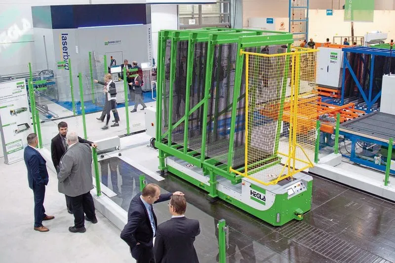 Welch große Relevanz die Themen Automation und Arbeitssicherheit inzwischen erreicht hätten, zeigte laut Hegla die große Zahl an Besuchern rund um das erstmals präsentierte AGV, ein autonom fahrendes Transportmittel für Fächerwagen, A- und L-Gestelle. Mit aktuell bis zu zweieinhalb Tonnen Traglast und eingebunden in die Fertigungssteuerung oder ein Leitsystem werde die Glasbereitstellung taktgerecht, flexibel und selbstständig organisiert. Individuell angepasst an die Kundenbedürfnisse, sei es möglich, die Scheiben beispielsweise zwischen mehreren Stationen prozesssicher zu transportieren, in eine Sortierlösung ein- und auszuschleusen und die Fertigungsprozesse im Sinn einer zeitgemäßen Shop Floor-Logistik flexibel an sich verändernde Anforderungen anzupassen.