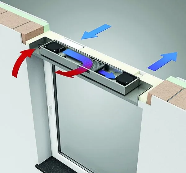 Bei einem Wärmerückgewinnungsgrad von bis zu 45 Prozent ist mit VentoTherm laut Herstellerangaben eine Absenkung der Energieverluste im Vergleich zur klassischen Lüftung um bis zu 35 Prozent möglich. Das Lüftungselement von Schüco verändert laut DuoTherm den optischen Gesamteindruck des Fensters fassadenseitig gar nicht und raumseitig lediglich durch eine Abdeckblende. Darüber hinaus sei der Einbau im Gegensatz zu zentralen Lüftungssystemen in nur wenigen Arbeitsschritten realisierbar.
