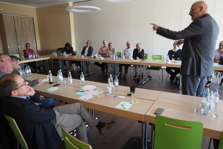 Praxisforum in Langenbruck: Die zirka 20 Teilnehmer hören sich die Ausführungen von Prof. Christian Niemöller zum neuen Bauvertragsrecht an. - © Metzger