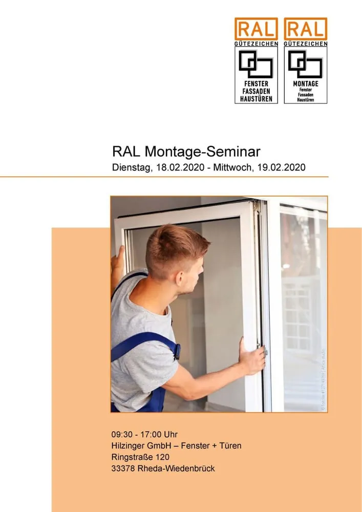 Das nächste Montage-Seminar findet am 18. und 19. Februar 2020 bei der Firma Hilzinger Fenster + Türen in Rheda-Wiedenbrück statt. An demselben Ort findet am Tag darauf, am 20. Februar, auch das Güteprüferseminar statt. Das zweitägige Montage-Seminar bietet einen umfangreichen Theorieteil zur Planung mit Ausführungsbeispielen sowie zu rechtlichen Aspekten vom Montagevertrag bis zur Abnahme. Hauptteil des praktischen Teils bildet ein ausführlicher Workshop zur Montageplanung. Die Themen des Güteprüferseminars reichen von den Produktnomen und der CE-Kennzeichnung über die Inhalte der RAL Gütesicherung und den Aufbau der damit verbundenen Eigenüberwachung bis zu einer abschließenden Erläuterung der Anforderungen an die Bauprodukte Fenster, Fassaden und Haustüren.
