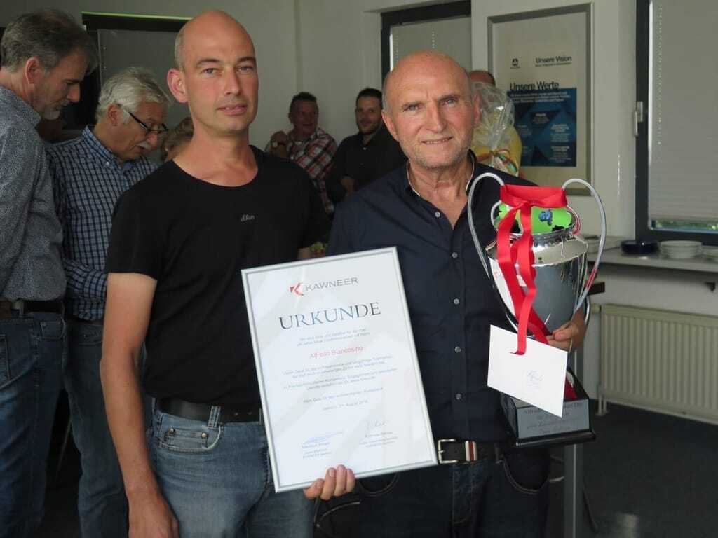 Die meisten der heute bei Kawneer in Iserlohn tätigen Kollegen waren noch nicht auf der Welt, als Alfredo Biancosino bei der damaligen Reynolds Aluminium Deutschland seine Karriere begann. In der Anwendungstechnik und als technischer Außendienst war der Italiener Biancosino jederzeit einsatzbereit und laut Kawneer bei Kunden mit seiner umfangreichen Erfahrung stets gern gesehen. Nach nunmehr knapp 47 Jahren für Reynolds/Alcoa/Kawneer geht er in den mehr als verdienten Ruhestand und übergibt den Staffelstab an Matthias Frewer, der seit 1. August 2016 für Kawneer tätig ist. Frewer ist Metallbaumeister und hat 22 Jahre Erfahrung im Metallbau und mit Kawneer Systemen. Darüber hinaus arbeitete Biancosino ihn gründlich ein, so dass er den Kunden ebenfalls kompetent als Ansprechpartner zur Verfügung steht.