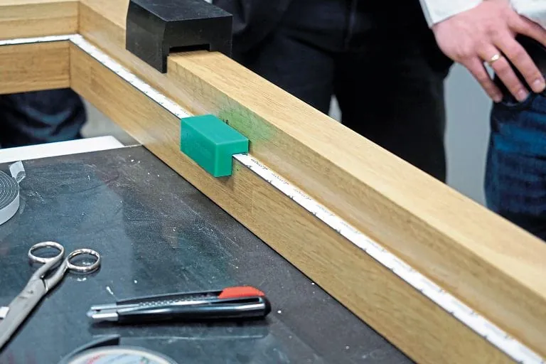 Für Felix Meixner, Produktionsleiter bei der Schreinerei Engelbert Wolf in Heufeld, war der Workshop gerade in produktionstechnischer Hinsicht sehr interessant. Insbesondere das filigrane Leitz-System gefällt dem Fachmann. „Wenn es eine Möglichkeit gäbe, dass die Glasleisten entfallen könnten, wäre das der Wahnsinn.“ Die immer schmäleren Profile machen nach seinen Angaben – wegen der geringeren Steifigkeit der Elemente – die Scheibenverklebung in Zukunft immer interessanter, zumal nun mit der überarbeiteten ift-Richtlinie ein Arbeitsschritt in der Fertigung entfallen könne. „Bislang kleben wir den Falzgrund vor der Beschichtung ab. Das verursacht immense Kosten.“