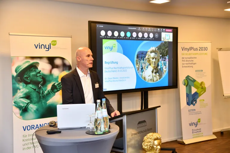 "Als europäische PVC-Branche wollen wir unseren Beitrag dazu leisten, die großen globalen Nachhaltigkeitsthemen zu lösen. Wir halten Kurs trotz der großen wirtschaftlichen und operativen Herausforderungen", betonte Oliver Mieden, Vorsitzender von Vinylplus Deutschland.
