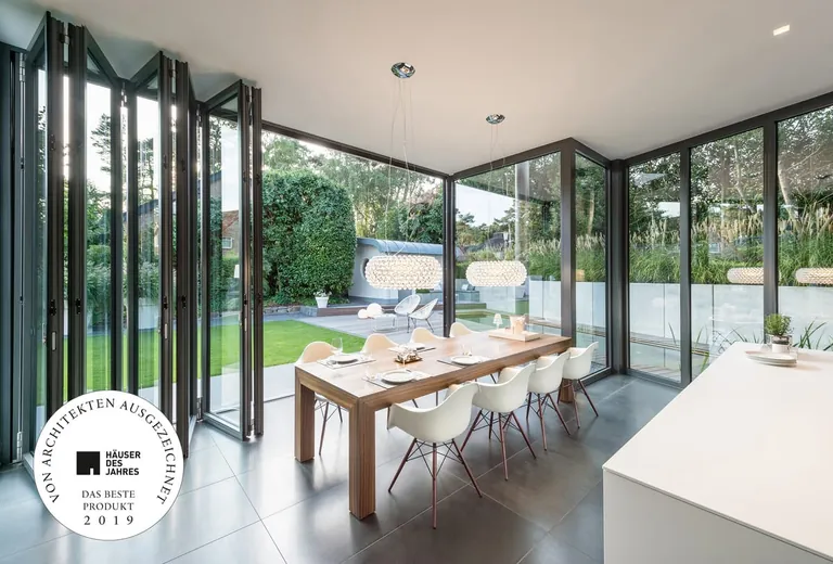 Die Glas-Faltwand von Solarlux ist im Rahmen des Wettbewerbs Häuser des Jahres – die besten Einfamilienhäuser 2019 als Produkt des Jahres ausgezeichnet worden. In der Preiskategorie Fenster überzeugte sie die Jury mit ihrer eleganten Optik, der Technik und ihren vielfältigen Gestaltungsmöglichkeiten.