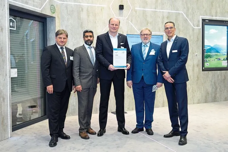 Rohstoffbeschaffung, Verarbeitung, Recycling: Rehau erfüllt die Kriterien für die ViylPlus-Zertifizierung. Auf der FENSTERBAU FRONTALE erfolgte die Übergabe an Carsten Heuer (Head of Division Window Solutions), Michael Dietz (Head of Technics Window Solutions), Dr. Michael Stöger (Head of Operations and Supply Chain) und die zuständigen Marktgebietsleiter.