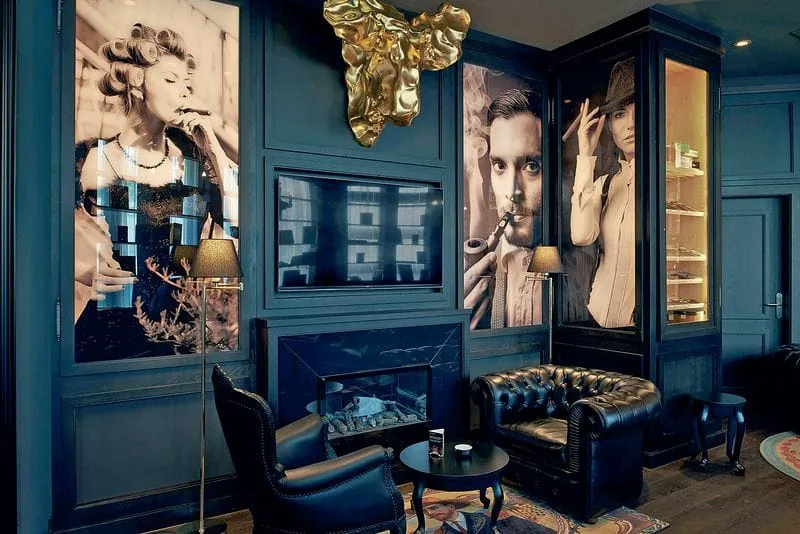 In der gediegenen Atmosphäre der Smoker’s Lounge finden Gäste die bedruckten Designgläser mit 3D-Effekt wieder, dort als elegante, großformatige Porträtaufnahmen. Für dieses besondere Bauvorhaben wurde Glas Trösch von der Fertigung der Designgläser bis hin zu deren Montage vor Ort beauftragt. Mittels umfangreicher Bemusterungen der Motive an verschiedenen Trägergläsern stimmte der Hersteller die gewünschte Bildqualität im Vorfeld mit dem Kunden ab und überprüfte durch den Einbau von Musterbädern für das Objekt die Haftung und Verträglichkeit des Montageklebers sowie das Fugenbild. Mit kürzesten Bauzeiten bestückte Trösch nach eigenen Angaben 32 Zimmer pro Woche ohne Verzögerung mit den bedruckten Gläsern.