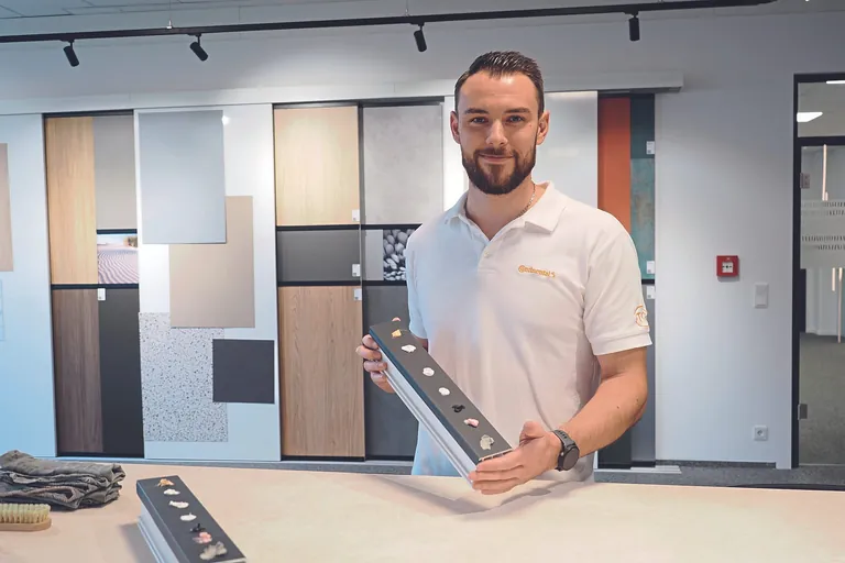 Was die Conti mattex Oberfläche außerdem besonders macht, ist ihre Reinigungsfreundlichkeit. „Als Deckschicht kommt eine spezielle Beschichtung zum Einsatz, die in Verbindung mit der rauen Oberflächenstruktur zu einer niedrigen Oberflächenenergie führt. Aufliegende Verschmutzungen haben dadurch keine Möglichkeit, sich vollflächig mit der Oberfläche zu verbinden“, sagt Marius Wolz, Anwendungstechniker bei Continental in der Geschäftseinheit Surface Solutions (SSL).