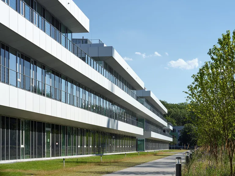 Fritsch+Tschaidse Architekten aus München planten ein transparentes multifunktionales Bürogebäude, dass optimale Belichtungsverhältnisse schafft und den Mitarbeiterinnen und Mitarbeitern großzügige Blicke in die Natur erlaubt.