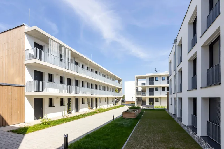 Im Osten von Fellbach entstehen derzeit 34 öffentlich geförderte Wohnungen und 72 Obdachlosenappartements in KfW40 plus-Bauweise. Insgesamt 78 Wohnungseingangstüren wurden mit dem Dynamic 3D-20 Rollentürband von SFS ausgestattet. Es verbindet hohe Belastbarkeit mit ansprechender Optik.