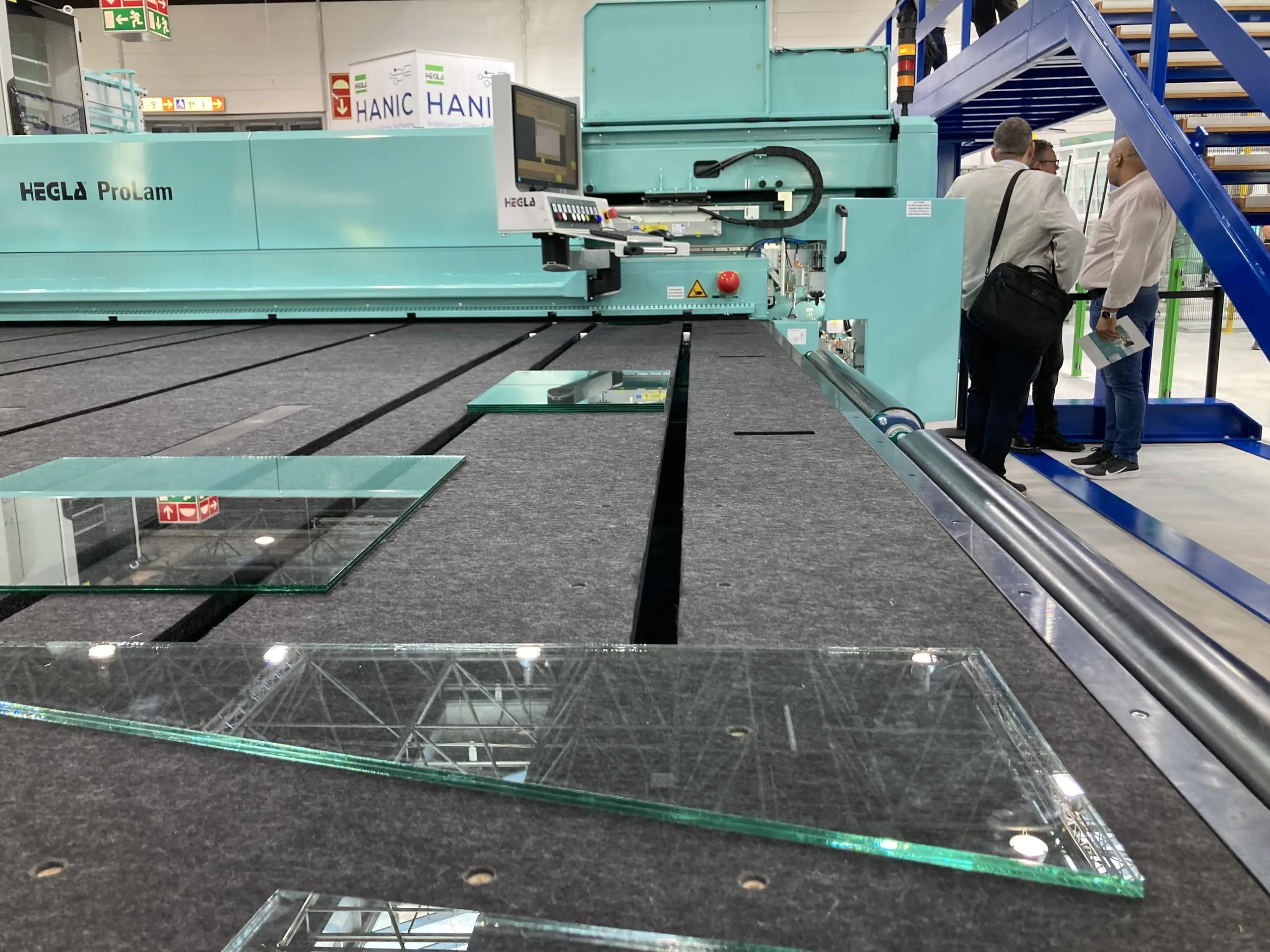 Eines der größten Exponate am Stand der Hegla Gruppe in Halle 14 ist die VSG-Schneidanlage ProLam LSR. Sie ist serienmäßig mit der Laserdiodenheiztechnik ausgestattet und steigert so die Produktivität um zwanzig Prozent und mehr, gemessen am Scheibendurchsatz. - © Dirks