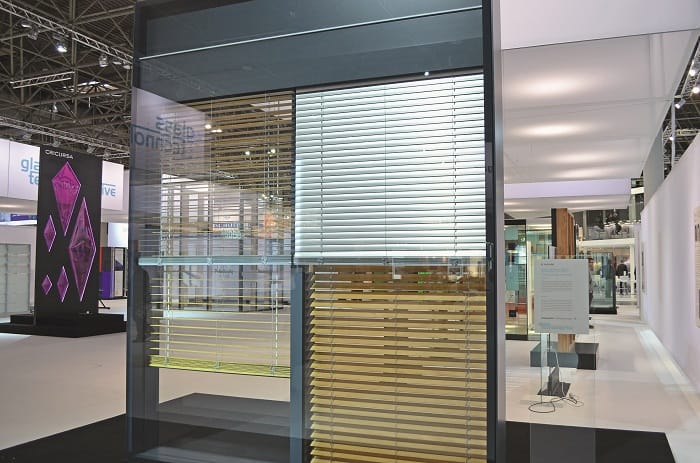 Die Fassadenbauer Permasteelisa, Scheldebouw und Gartner präsentierten auf der glasstec 2014 eine Weiterentwicklung des Fassadentyps: Dual Dynamic Durable Façade (D3-Fassade) als dreischalige Glasfassade mit zwei vollständig geschlossenen Zwischenräumen. „Das ist eine Weiterentwicklung der herkömmlichen Closed-Cavity-Fassade (CCF)“, erklärt Architekt Johannes Pellkofer vom Institut für Baukonstruktion der Universität Stuttgart, der mit seinem Team die Sonderschau glass technology live (gtl) auf der Düsseldorfer Messe organisiert hatte. In beide Kavitäten hatten die Hersteller Jalousien integriert. Diesen Sonnenschutz liefern die Unternehmen aus unterschiedlichem Material und in diversen Varianten. Für das gtl-Exponat hatten die Konstrukteure Aluminium- bzw. Holzlamellen eingesetzt.