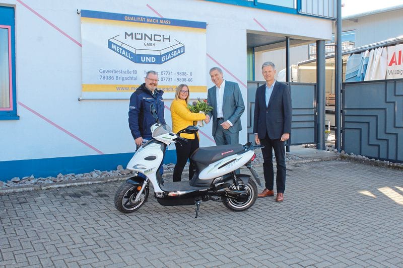 Als familiengeführtes Traditionsunternehmen erfülle Metallbau Münch alle Kundenanforderungen im Bereich Glas- und Metallbau – von Fenstern und Türen bis hin zu technisch aufwändigen und anspruchsvollen Glasfassaden, Erkerkonstruktionen sowie Lichtdächern. Münch achte dabei auf Perfektion bis ins Detail. Eine durchgängig gelebte Philosophie, welche die Lieferanten mit einbezieht: „Nur wer mit der Zeit geht und stets Top-Qualität liefert, darf bei uns liefern. Die Qualitätsprodukte der Deflex-Dichtsysteme gehören dazu“, sagt Patrik Münch. Der gewonnene E-Roller wird ganz im Zeichen der Familie auch als Familienroller eingesetzt, versicherte das Ehepaar.
