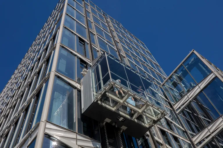 Besonders spektakulär ist der Einsatz im Außenaufzug Ascent, der den Angaben zufolge der größte außen liegende Glasaufzug der Welt ist. Die umseitig – auch im Boden – mit dem nahezu unsichtbaren Clearsight verglaste Kapsel klettert von der Aussichtsplattform aus weitere zwölf Stockwerke an der Außenfassade empor, bis auf eine Höhe von 369 Meter über Manhattan.