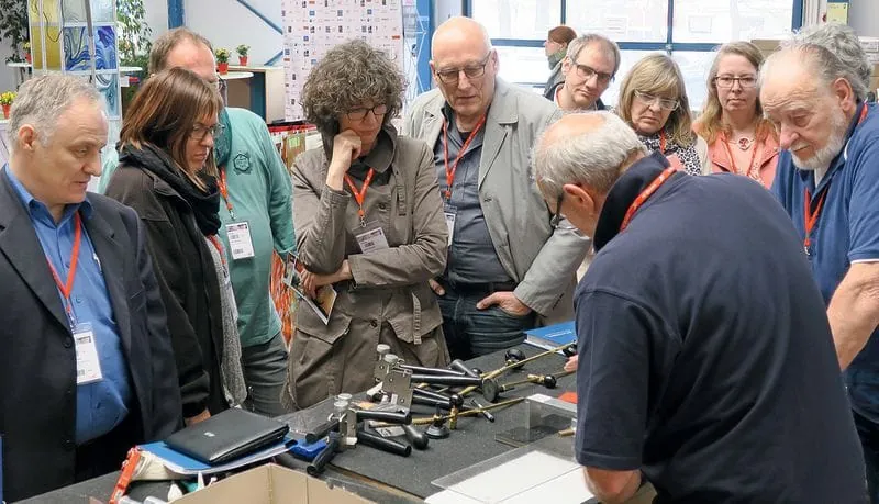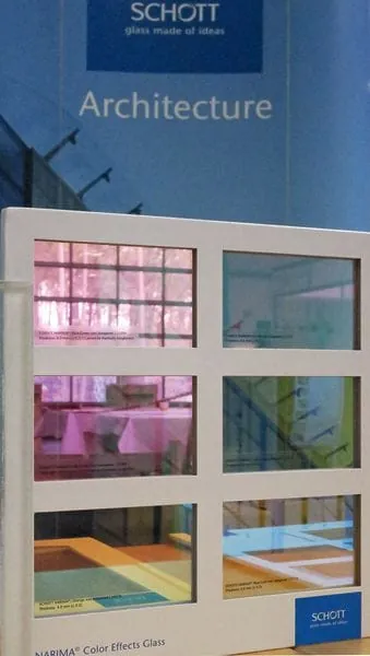 „Farbige Aussichten“, so lautete das Thema der 26. Hausmesse von TGK, des Spezialisten rund um Glaskunstprodukte und -gestaltung. Und Farbe gab es tatsächlich reichlich. So präsentierte das Unternehmen Schott ein dichroitisch beschichtetes Architekturglas namens Narima, das in der Durchsicht eine andere Farbe erzeugt als in der Spiegelung und je nach Blickwinkel unterschiedlich wirkt. Die aus Amerika angereisten Glashersteller Spectrum und Bullseye stellten Gläser und Produkte zur künstlerischen Gestaltung vor. Bestaunen konnten die mehr als 550 Gäste, darunter zwei Besucher aus Uruguay und einer aus Korea, neue Effektspiegel der Manufaktur Antik-Mirror, die in den vergangenen Jahren laut TGK eine wahre Renaissance mit ihrem unverwechselbaren Produkt erfährt. Ergänzend zum Farbglas zeigte der Veranstalter eine ganze Palette von Produkten für die Veredelung von Glas. Dies schloss eine Malfarbe ein, welche Experten bei 800 Grad Celsius einbrennen, und eine Kaltfarbe zur Kolorierung von Sandstrahlflächen.