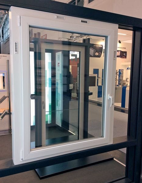 Je besser die Gebäudehülle gedämmt ist, umso wichtiger wird eine ausreichende Belüftung. Anderenfalls droht neben schlechter Luft im schlimmsten Fall auch Schimmel im Gebäude. Mit Geneo Inovent bietet das Unternehmen ein direkt ins Fenster integriertes Lüftungssystem. Möglich sei diese Integration dank der hohen Stabilität des Fensterprofilsystems Geneo und des Verzichts auf Stahlarmierungen. So ist das System auch besonders für den Einsatz in der Sanierung interessant: einfach altes Fenster raus und neues Fenster inklusive Lüftung rein. Es sind keine zusätzlichen Stemm- oder Bohrarbeiten am Mauerwerk nötig. Der maximale Luftaustausch von 30 Kubikmeter pro Stunde und Fenster sorgt für hohe Wohnqualität. Die Lösung besteht aus zwei Lüfterpaaren, die der Verarbeiter jeweils seitlich in den Blendrahmen integriert.