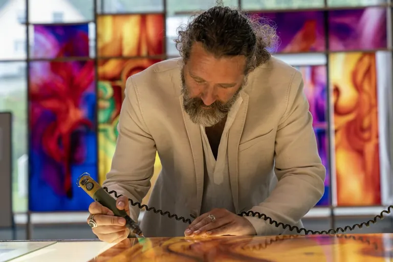 Ein Unternehmen, das sich der Glasveredelung verschrieben hat, ist die Glasmalerei Peters im nordrhein-westfälischen Paderborn. „Wir setzen die Visionen von Künstlern um und schlagen so die Brücke zwischen der Kunst und der Industrie“, sagt Jan Peters, der das im Jahr 1912 gegründete Unternehmen in vierter Familiengeneration leitet. Über die Grenzen von Deutschland bzw. Europa hinweg hat sich die renommierte Werkstatt u.a. mit Bau- und Kunstprojekten für Bahnhöfe wie z.B. in der New Yorker Metro, Flughäfen und Krankenhäuser in den USA, Kanada, China und jüngst auch in Saudi-Arabien einen Namen gemacht. Ob Bleiverglasung, Glasmalerei, Fusing, Ätzen, Sandstrahlen, Siebdruck, Kleben bzw. Laminieren, Digitaldruck oder Airbrush – das Repertoire der Techniken ist breit gefächert. Zudem entstehen durch die Kombination verschiedener Techniken immer wieder neue Gestaltungsmöglichkeiten. „Wir testen die Grenzen des Machbaren aus und gehen auch gern mal neue Wege“, beschreibt der Geschäftsführer die Firmenphilosophie. Dazu gehört z.B. auch das Experimentieren mit Zukunftstechnologien wie Photovoltaik in Verbindung mit Glas.
