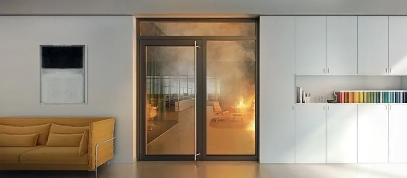 Schmale Profilansichten zeichnen die Aluminium Brand- und Rauchschutzplattform Schüco FireStop aus.