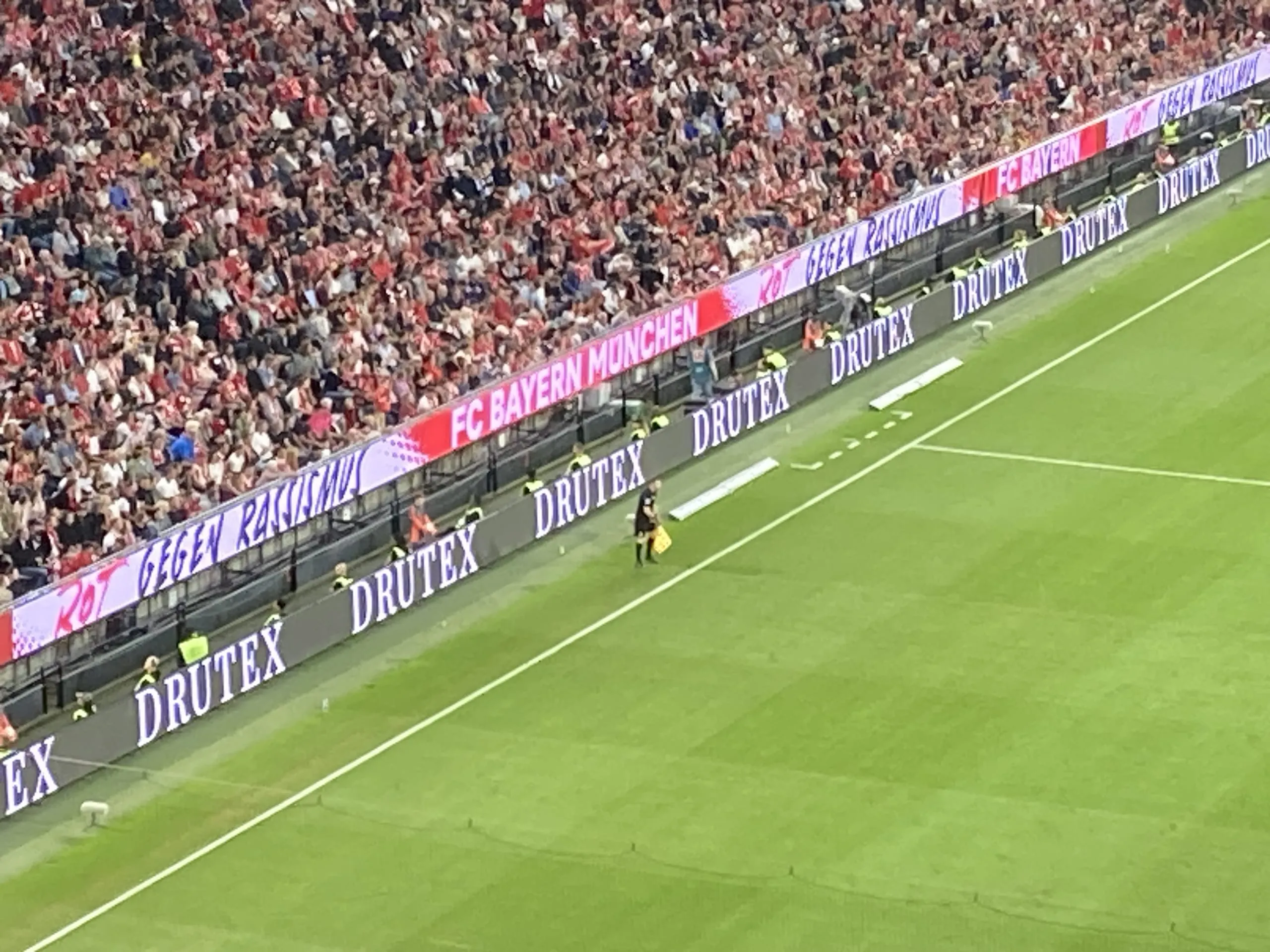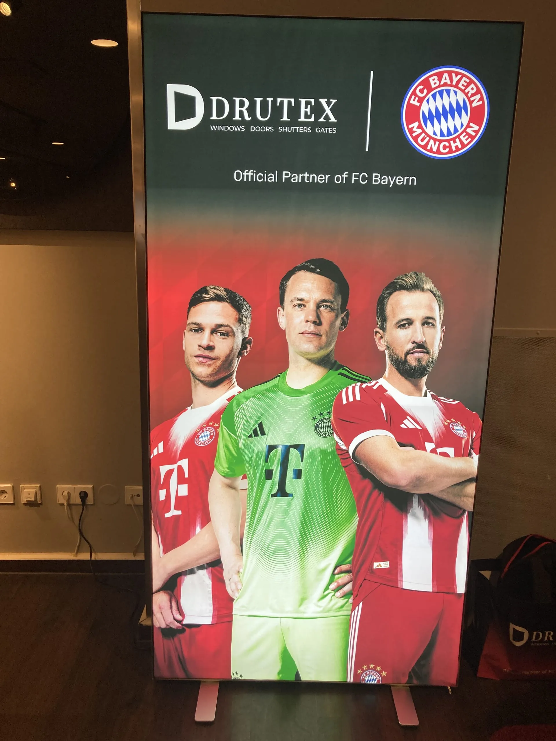 Bayern München besiegte zum Start der Bundesligasaison vor heimischer Kulisse RB Leipzig mit 6:0. Während des Spiels waren erstmals die Werbebanner am Spielfeldrand mit dem Logo von Drutex zu sehen.