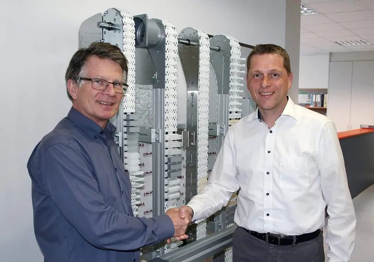 „E-M-M-A soll als neuer mk-Standort in Österreich in die Gruppe integriert und weiter ausgebaut werden“, so Sascha Krebs, Geschäftsführer von Maschinenbau Kitz und verantwortlich für die DACH-Region. Zukünftig bietet E-M-M-A das komplette Profil- und Fördertechnik-Sortiment sowie Systemlösungen von mk an. Die bewährten Emma-Kunststoffkettenförderer, auch Scharnierbandförderer genannt, schließen eine Lücke im mk-Produktportfolio. „Mir war klar, dass ich das Geschäft nicht für immer weiterführen werden kann“, sagt Hannes Lederbauer, Geschäftsführer der E-M-M-A GmbH. „Ich wollte die Zukunft des Unternehmens und des Standortes in sicheren Händen wissen.“