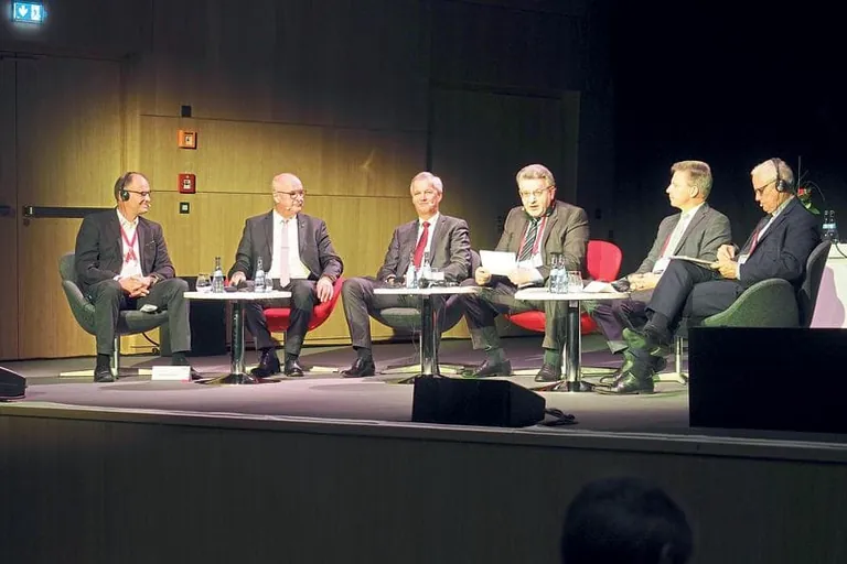 Podiumsdiskusion (v.li.): Hanspeter Gasser, Dr. Eckhard Keill, Dr. Heinz Scharl, Frank Linnig, Andreas Hartleif, Marc Bonjour - © Metzger