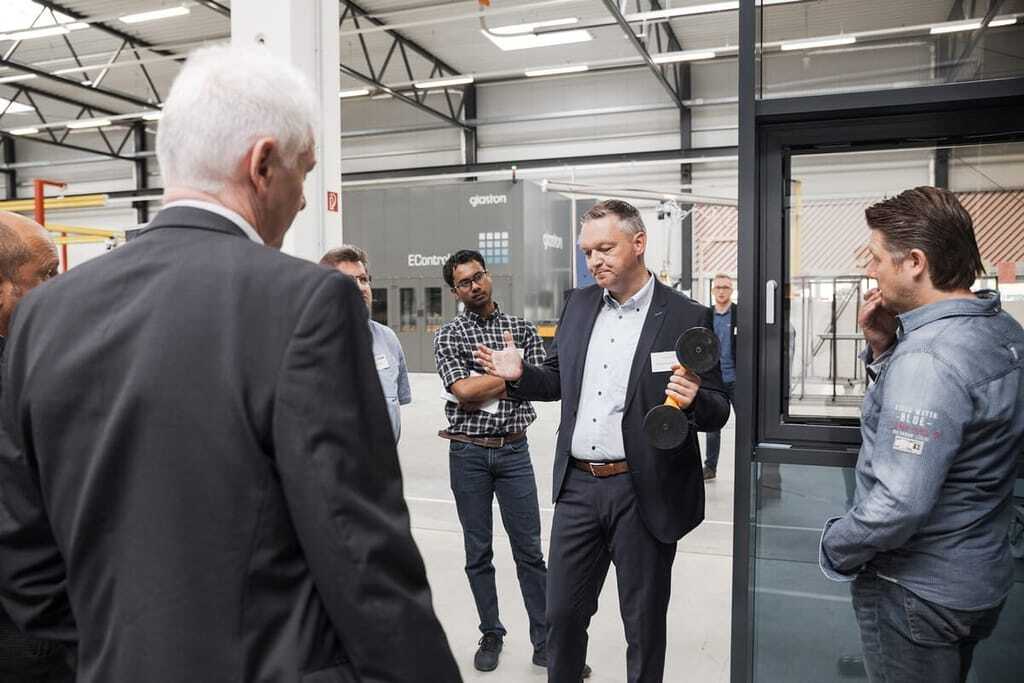 Bei einer Führung durch die Produktionshallen, erklärte Thomas Groneick (Mitte), aus dem EControl-Vertriebsteam, die Funktion und den Aufbau der smarten Scheiben. - © EControl-Glas
