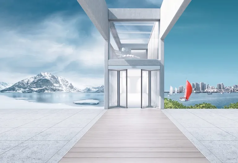 Die FFT FLEX Green kann vor oder in eine Bauöffnung montiert werden. Damit in jeder Einbausituation ein schwellenloser Zugang gewährleistet ist, wird die schmale Edelstahl-Bodenschiene in den Boden eingelassen. Oberflächen in verschiedenen Eloxal-Tönen oder pulverbeschichtet nach RAL passen die Anlage auch optisch an den Raum oder die Fassade an.