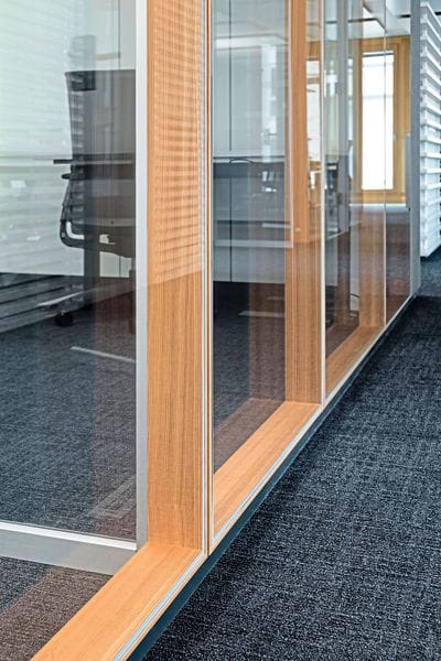 Die lebendige Holzoberfläche soll zukunftsfähigen Bürolandschaften einen natürlichen Charakter verleihen, ohne auf die Vorteile vorgefertigter versetzbarer Systemtrennwandlösungen verzichten zu müssen.