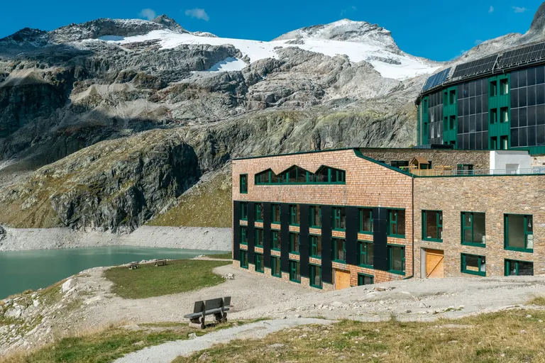 Das Berghotel Rudolfshütte im österreichischen Nationalpark Hohe Tauern liegt in einer Höhe von 2.315 Meter und ist ausschließlich per Gondel erreichbar. Um der steigenden Nachfrage gerecht zu werden, haben die Eigentümer einen Erweiterungsbau realisiert. Für diesen wählten sie Fenster- und Türsysteme von Heroal.