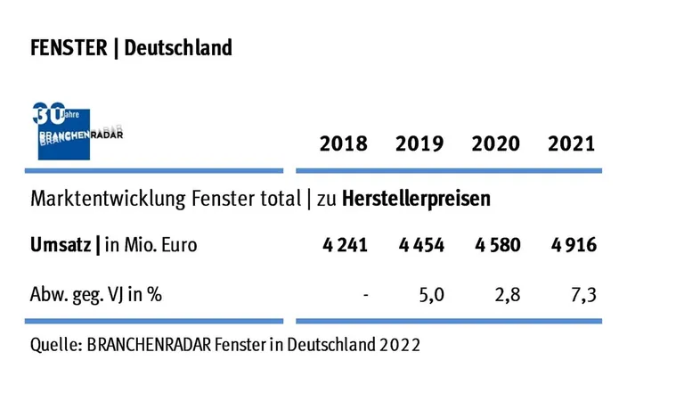 Marktentwicklung Fenster in Deutschland. - © Brachenradar Fenster in Deutschland 2022