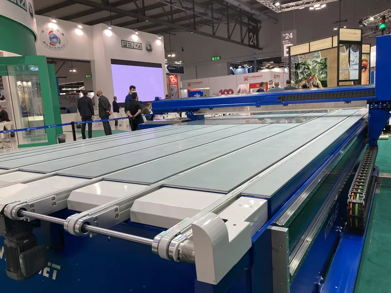 Auf der Vitrum 2021 in Mailand stellte die Fenzi Gruppe ihre Neuentwicklungen der Fachöffentlichkeit vor. Im Bild: eine Glasdruckmaschine von Tecglass. - © Dirks