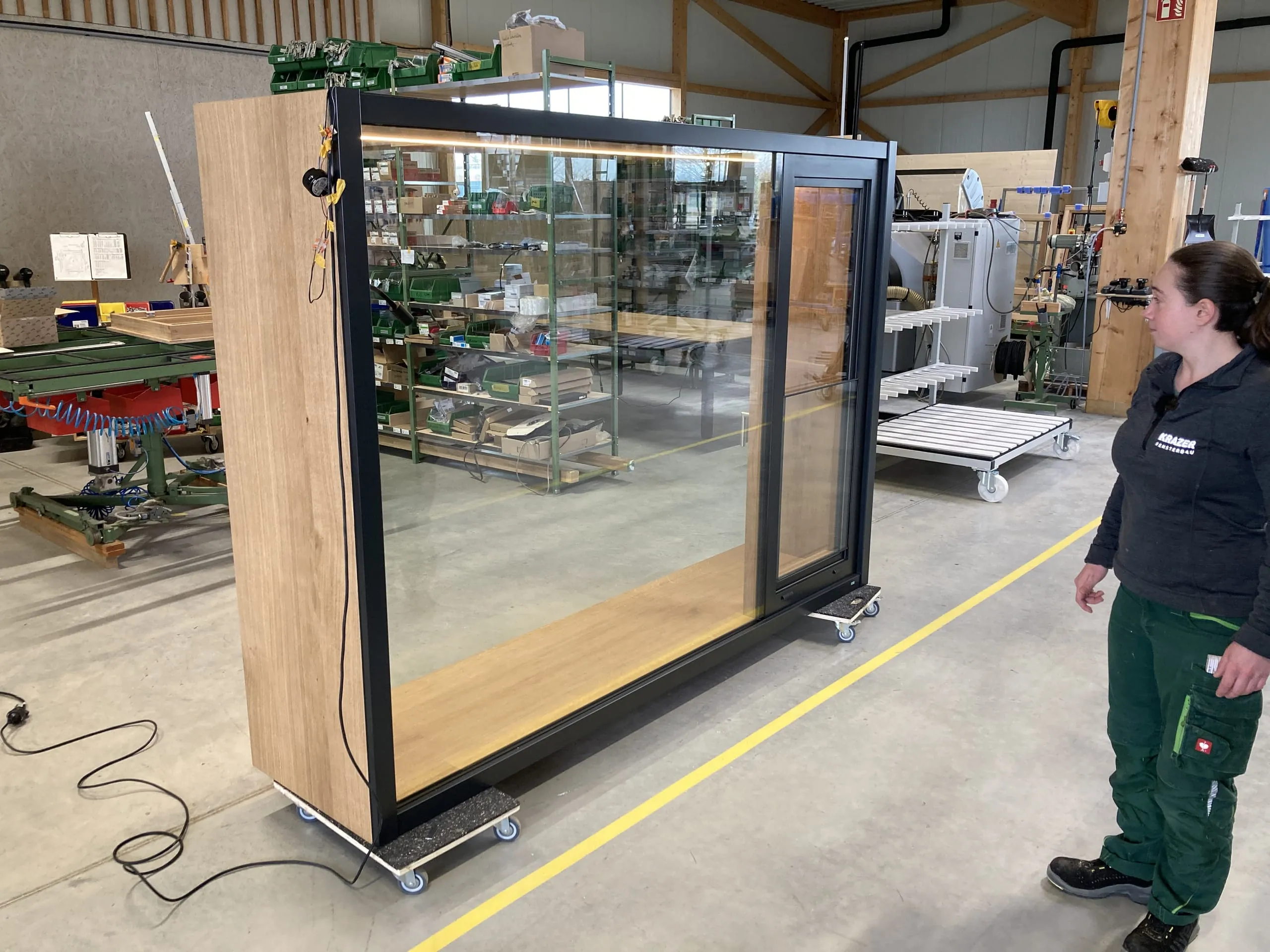 Neben Einbruchhemmung hat der Betrieb auch Erfahrung mit Brandschutzelementen. Die neuen Räumlichkeiten stehen auch für den Generationswechsel. Siegfried Krazer führt den Betrieb in zweiter Generation, seine Kinder werden die Firma in Zukunft eigenverantwortlich leiten. Michael Krazer hat in Rosenheim Fenster- und Fassadentechnik studiert. In seiner Masterarbeit hat er sich mit einer polygonalen Holz-Alu Pfosten-Riegel-Konstruktion beschäftigt und einen Prüfkörper gebaut. Die Konstruktion der Bauten ähnelt den Jurten der Nomaden in Zentralasien. "Alle Verbindungen sind lösbar – gesteckt, geklemmt oder geschraubt", sagt Krazer Junior. Krazer hat davon inzwischen zig Elemente gefertigt, die bei Kindertagesstätten und Kindergärten bundesweit verwendet werden. Auftraggeber ist ein Unternehmen aus Schwäbisch Gmünd, das auf solche Lösungen spezialisiert ist.