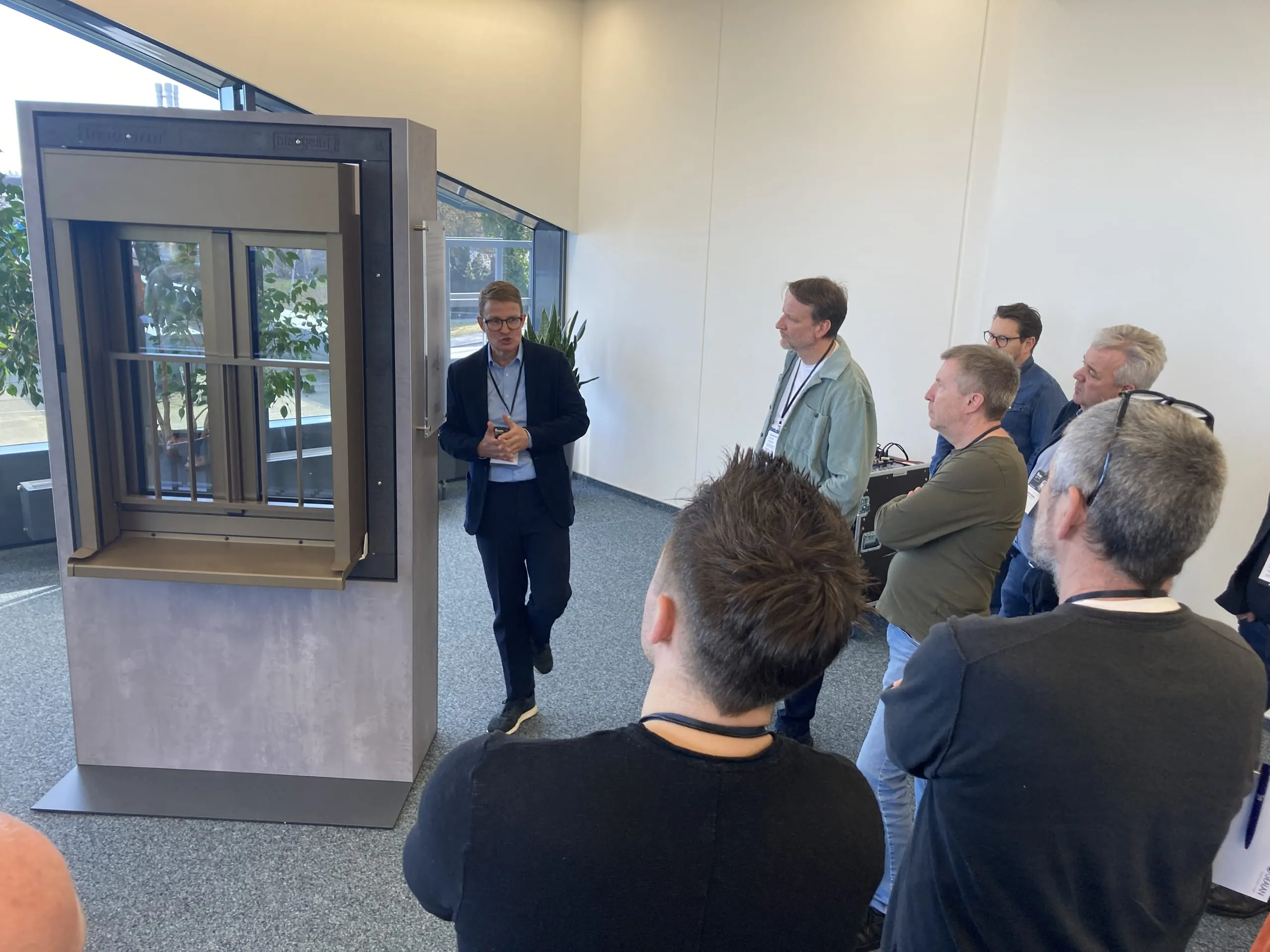 Am Vormittag standen Vorträge und Präsentationen auf dem Programm, am Nachmittag folgten in kleinen Gruppen Rundgänge und Produktvorstellungen anhand von Musterelementen.