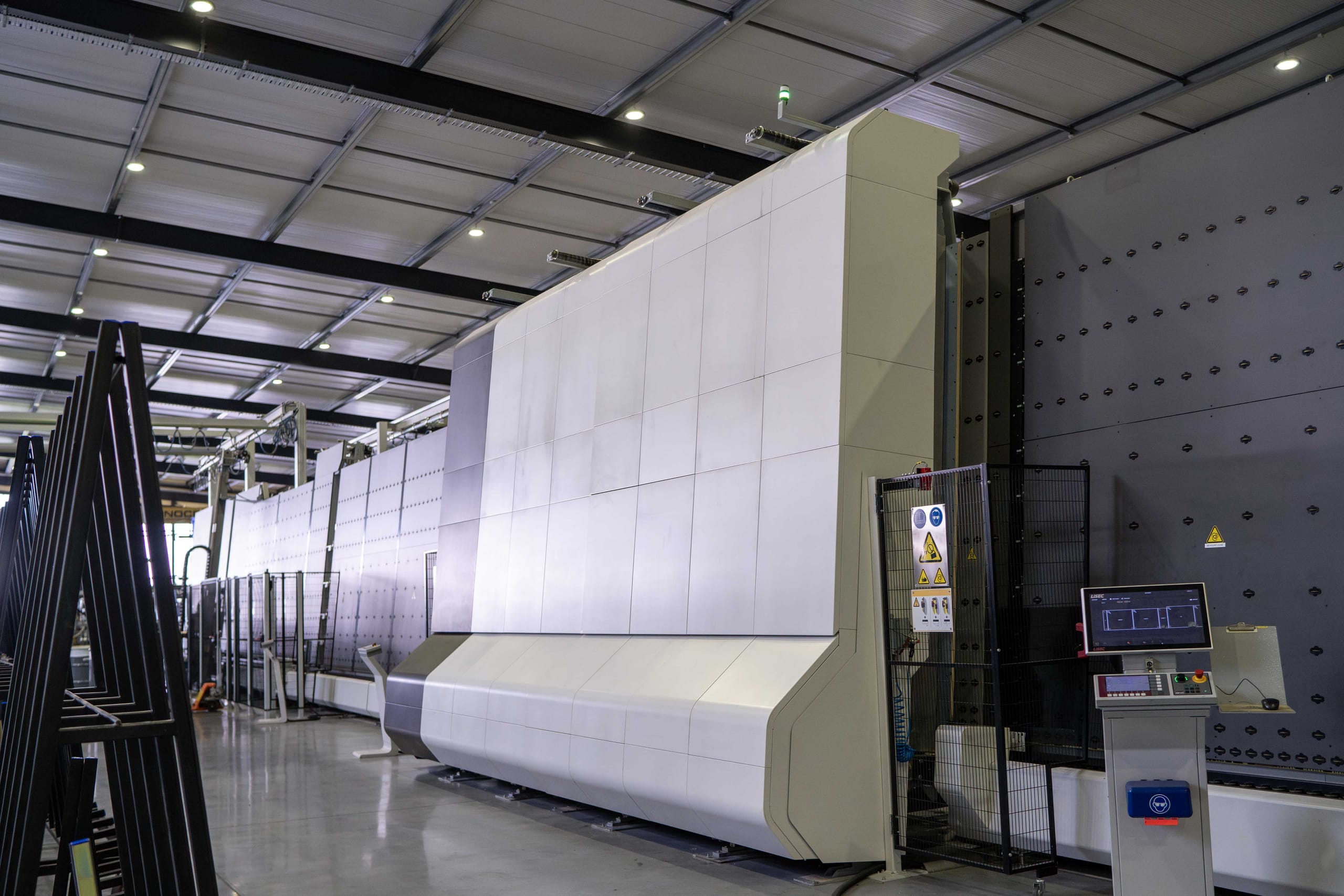 © LisecDie Fertigungsstrecken von Lisec, die bei AGP als Durchläufe bekannt sind, sind vollkommen prozessoptimiert. In der 415 Meter langen Produktionshalle erstrecken sich die drei Fertigungsstrecken von Lisec in gerader Linie über 335 Meter. Das war in der Planungsphase ein durchdachter Ansatz, der sich für den neuseeländischen Isolierglashersteller als großer Vorteil in Bezug auf die Taktzeiten erwiesen hat. Die ersten drei Durchläufe zeichnen sich durch einen linearen Fertigungsfluss aus, bei dem keine Rückführung oder Kurve erforderlich ist. Dank des hohen Automatisierungsgrads arbeiten diese Anlagen mit relativ wenig Personal. -