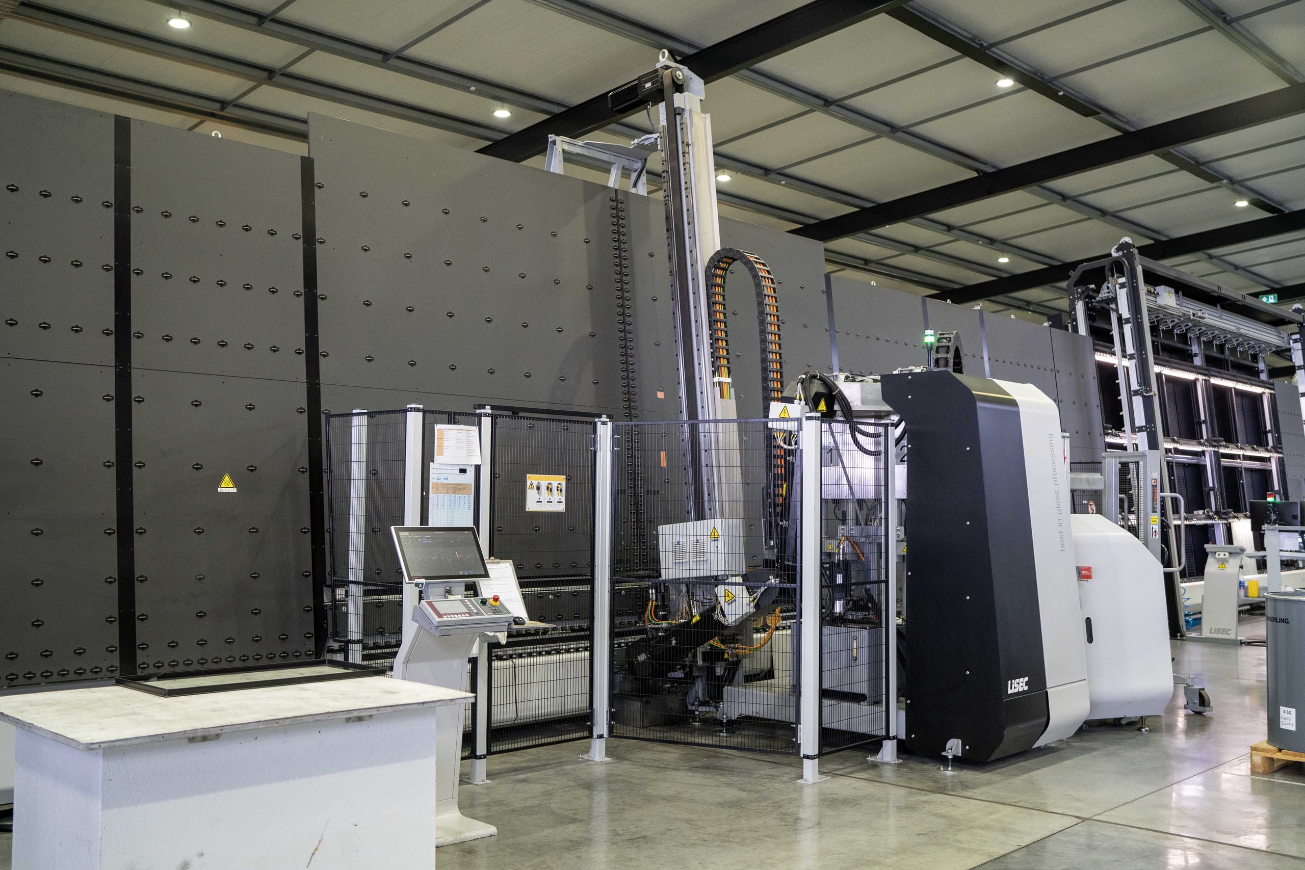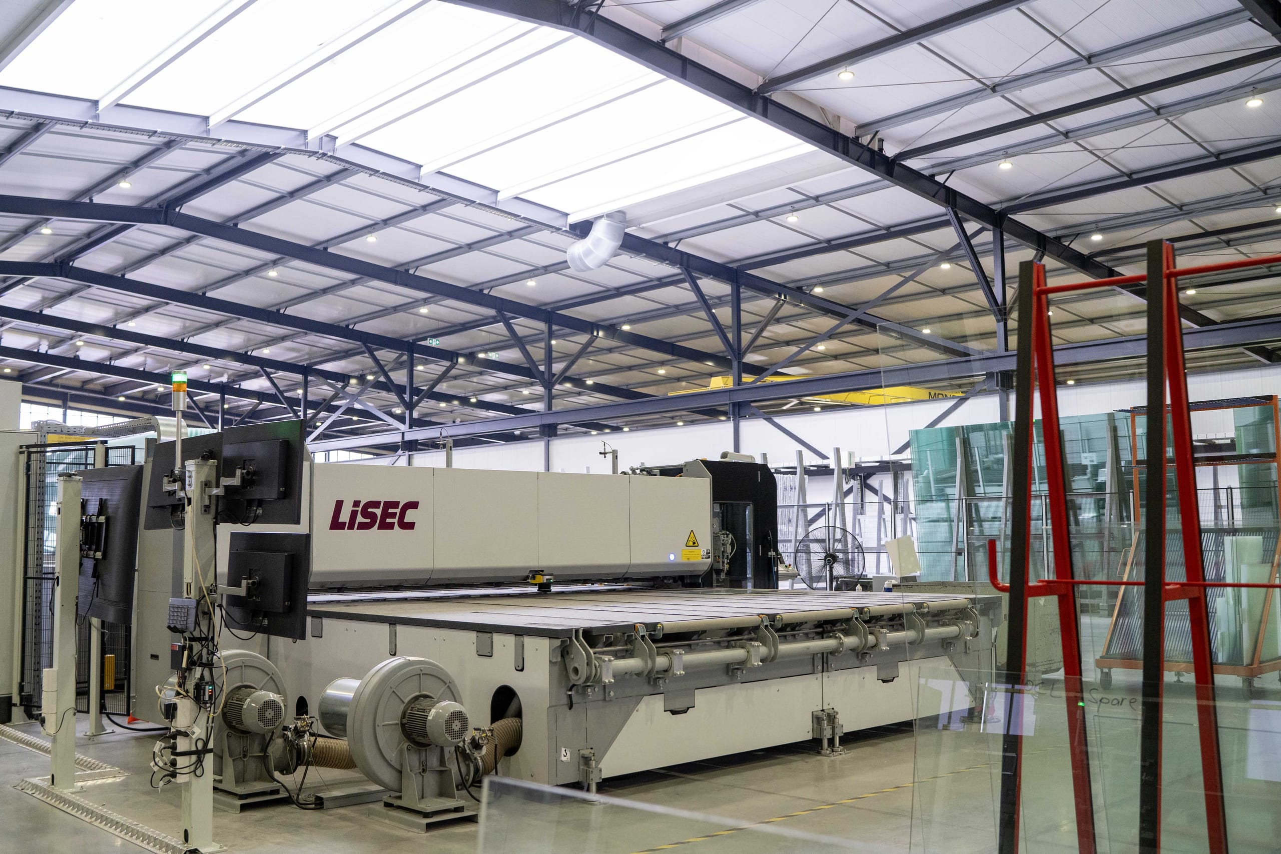 © LisecDie Schneideanlage des ersten Durchlaufs besteht aus den Maschinen LiSEC ESL-RS und ATH. Einzigartig daran sei die Lichtschranke, die das Glaslager unterteilt, so dass eine Hälfte vom Bediener nachgefüllt werden kann, während die andere Hälfte im Einsatz ist. Der Produktionsablauf wird so beim Nachfüllen nicht unterbrochen. Zudem sammelt ein Restplattenspeicher, der von einem beweglichen Ladetisch beschickt wird, Restplatten zur späteren Verwendung. Die Schneideanlage des zweiten Durchlaufs ist eine Kombistrecke aus Lisec GFB-Schneidtisch mit VB und einem automatischen X-Brechsystem für Flachglas. Erweitert ist es um eine Abziehvorrichtung für die Folien, damit saubere Kanten entstehen. Die Schneideanlage des dritten Durchlaufs ist ebenfalls eine Kombistrecke, und zwar zum Schneiden von Flach- und Verbundglas mit dem Lisec ESL-RS (Flachglas) und einer Lisec VB (Verbundglas) für Scheiben in Großformat von bis zu fünf Meter. -