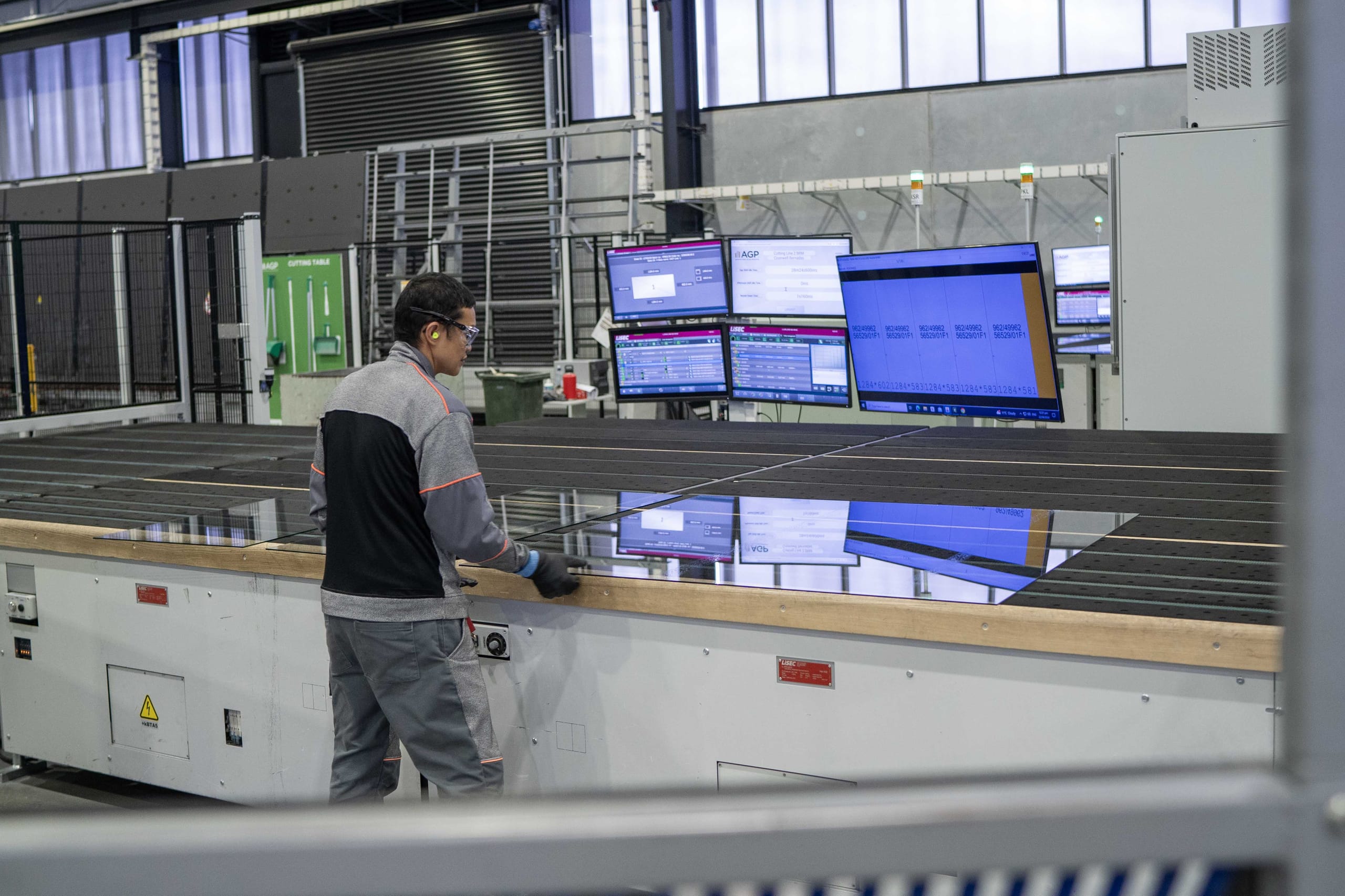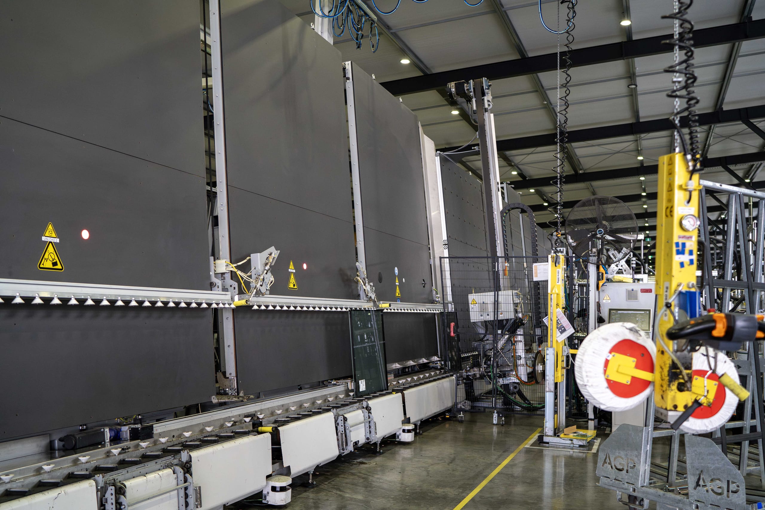 © LisecDie Abläufe bei AGP sind hochkomplex, aber das Lisec-Sortiersystem ist sehr gut durchdacht und bewegt die Scheiben über mehrere Prozesse hinweg mit großer Leistungsstärke. Neben der Sortierung wird jede Glasscheibe mit einem Laserlogo und einem Datamatrix-Code gekennzeichnet, damit während des gesamten Prozesses eine Rückverfolgung möglich ist.
