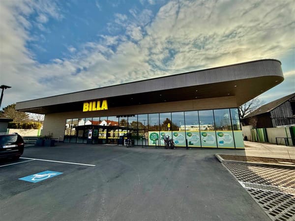 Der neue Billa-Markt in Wien-Donaustadt trägt mit seinem mehrfach ausgezeichneten Nachhaltigkeitskonzept aktiv zum Klimaschutz bei. Für einen niedrigen ökologischen Fußabdruck sorgt unter anderem eine auf Lowcarbon-Rohstoffen basierte Glasfassade. Zum Einsatz kamen das CO2-reduzierte Glas Oaré von Saint-Gobain Glass sowie Aluminiumprofile aus der Legierung Hydro Circal 75R von Wicona.