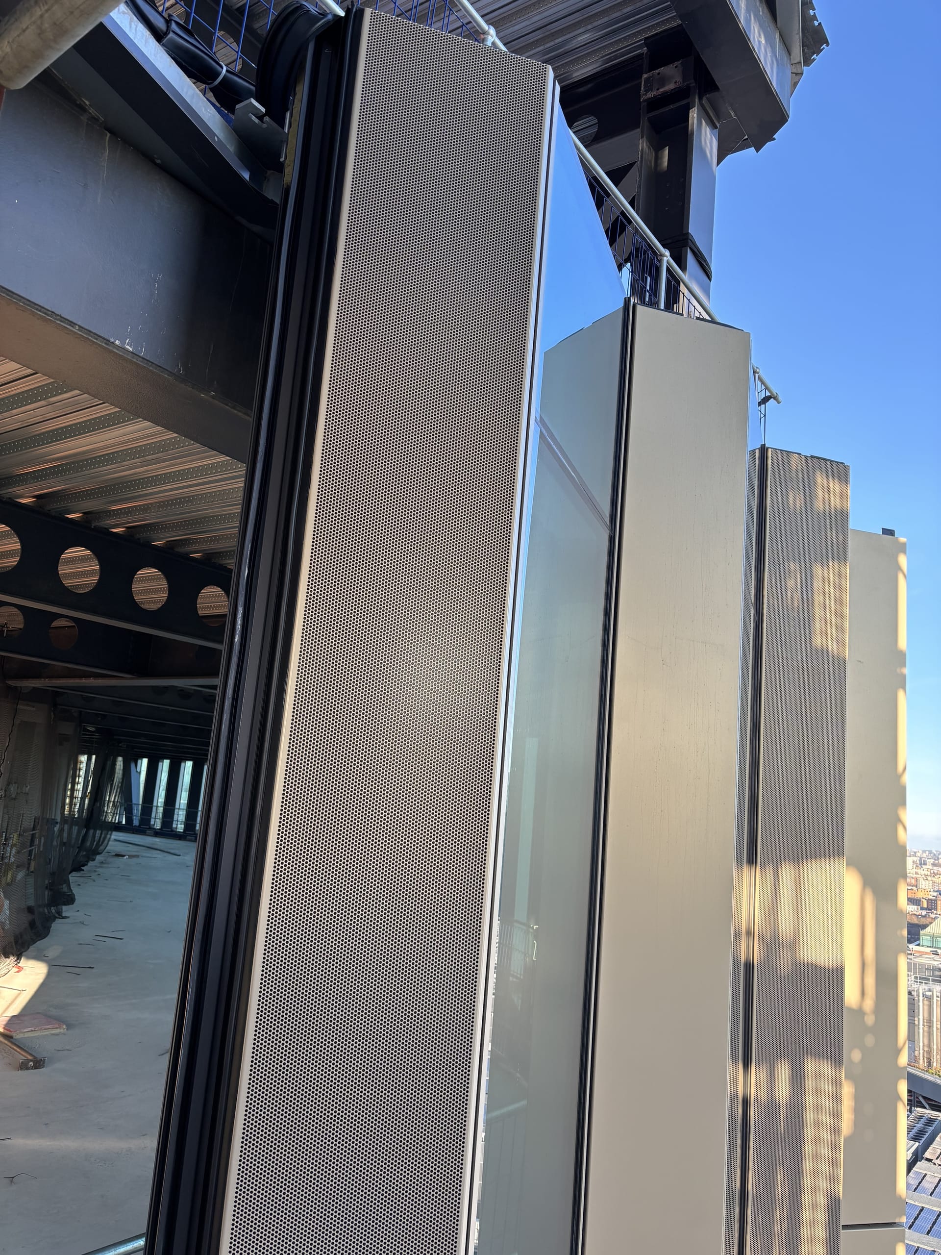 © AGC Interpane"2 Finsbury Avenue" ist ein aktuelles Bauprojekt im Londoner Finanzviertel, mit dem die Lead-Architekten von 3XN die Gebäudezertifizierung BREEAM Outstanding und Net Zero Carbon anstreben. Der Bau und der spätere Betrieb des Gebäudes sollen durch hybride Energiesysteme, Prinzipien der Kreislaufwirtschaft und Focchis vorgefertigte Elementfassade einen minimierten CO2-Fußabdruck erzeugen. Für das 12-stöckige verbindende Podium und die zwei Türme mit 38 bzw. 23 Stockwerken lieferte AGC Interpane mehr als 27.000 Quadratmeter Stopray-Sonnenschutz- und iplus-Wärmedämmverglasungen, auch in vielen dreieckigen und trapezförmigen Sonderformen, die aktuell montiert werden. Die Fertigstellung des Gebäudes ist für 2027 geplant. -