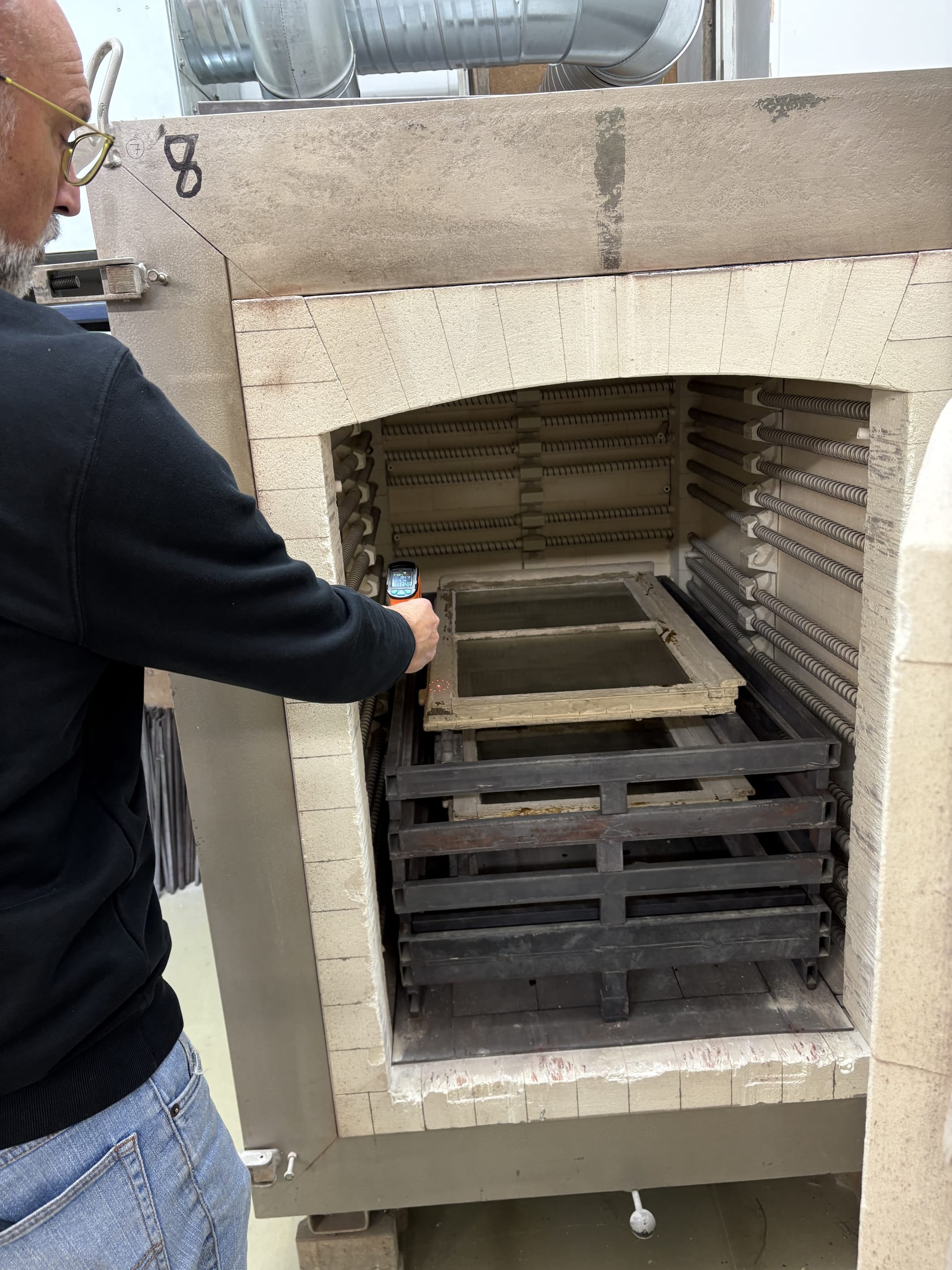 Der Ablauf ist wie folgt: Nach der Kartierung der Scheiben und Fenster erfolgt die thermische Vorbehandlung der historischen Fensterprofile im Ofen. Hier werden sie in einem sanften Temperaturanstieg auf die ideale Temperatur gebracht, so dass das Ausglasen und Entfernen von Kittresten anschließend per Hand erfolgen kann.