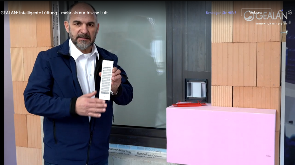 home / gealan webinar Allgemein - 22. Februar 2022 gealan webinar Martin Lutz von der Gealan Academy stellte die möglichen Befestigungsarten für das intelligente Lüftungssystem Claire smart vor. - © Screenshot: HMM leer keyboard_arrow_left Zurück zur Startseite