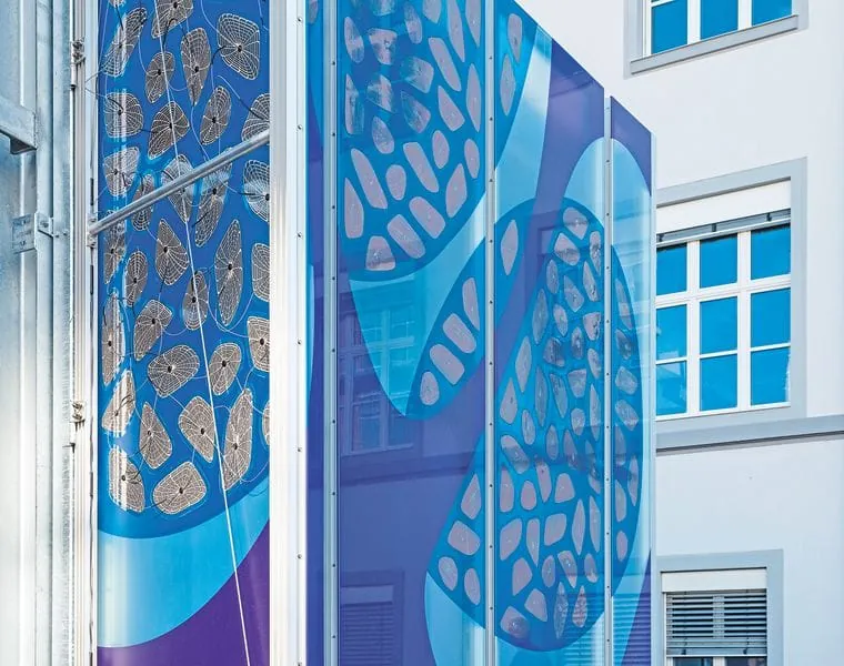 Beim Pharma- und Chemiekonzern Merck im hessischen Darmstadt erstrahlt eine extravagante Fassade in neuem Glanz. Mit dem Pilotprojekt sollte aufgezeigt werden, dass gedruckte organische Photovoltaik (OPV) im Zusammenspiel mit der Membranarchitektur einen wichtigen Beitrag zur Energieeffizienz von Gebäuden leistet. Durch das niedrige Gewicht und die damit verbundene Ressourceneinsparung gewinnen Membrane als Dach- und Fassadenwerkstoffe im Bauwesen an Bedeutung. Die Kombination von Membranen und klassischer PV stößt jedoch bisher an Grenzen. So muss anstelle der Leichtbauweise wieder auf massivere Strukturen zurückgegriffen werden. Um diese Hindernisse aus dem Weg zu räumen, trat Merck mit einem außergewöhnlichen Auftrag an Opvius, einen Hersteller von OPV-basierten Lösungskonzepten mit Sitz in Nürnberg, heran.