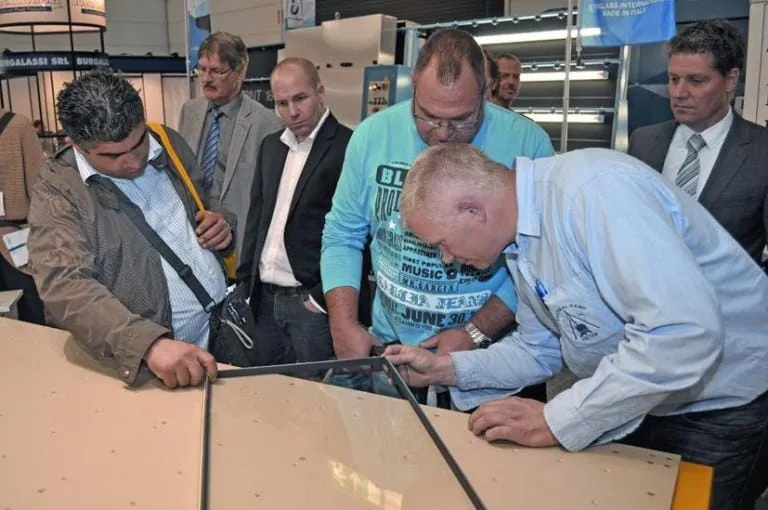 Neue Anwendungsmöglichkeiten für das Luftkissenverfahren beim vertikalen Vorspannen von Glas für Scheiben von 1,8 bis zwölf Millimeter Dicke zeigen einige Aussteller. Mit dieser Technik sinkt laut Siegfried Glaser, Mitglied des Vorstands im Forum Glastechnik beim Verband Deutscher Maschinen- und Anlagenbau (VDMA), der Energieverbrauch in der Fertigung um bis zu 40 Prozent. Gleichzeitig entstehen Dünnglasscheiben von enormer Widerstandsfähigkeit. Als Beispiel wird auf der glasstec ein marktreifes Isolierglas im Aufbau drei Millimeter ESG/zwei Millimeter TVG/drei Millimeter ESG mit einem Ug-Wert von 0,6 W/m2K, einem g-Wert von 65 Prozent und einer Lichttransmission von 73 Prozent zu sehen sein. Dünnglas hat Bewegung in den Einsatz von Vierfach-Isolierglas gebracht, das so leicht wie ein Zweifachglas sein soll. Die Messe zeigt in Halle 11 auf der Sonderschau glass technology live (gtl) ein Mock-up von einem Vierfach-Iso mit Glasdicken von 1,2 Millimeter und einem Ug-Wert von 0,3 W/m2K. Das Produkt kostet laut Glaser nicht signifikant mehr als ein hochwertiges Dreifach-Isolierglas.