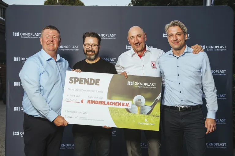 Oknoplast und Gäste spendeten 10.000 Euro an den Verein Kinderlachen. Der Verein Kinderlachen ist schwerpunktmäßig in Deutschland tätig und unterstützt dort eine Klinik für Kinder- und Jugendpsychosomatik. Im Rahmen der Oknoplast Open wurden aus Turnierbeiträgen, angebotenen Aktionen, einer Tombola und Spenden insgesamt 7.600 Euro erreicht. Oknoplast rundete mit 2.400 Euro die Summe auf 10.000 Euro auf. Künftig soll die Veranstaltung alle zwei Jahre stattfinden.
