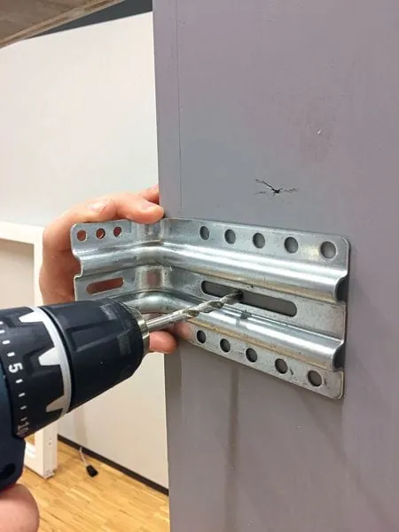 1. Schritt: Befestigen Sie die Winkel unten waagerecht unter Einhaltung der erforderlichen Randabstände und der geplanten Montagefuge mit je zwei Befestigungsschrauben.
