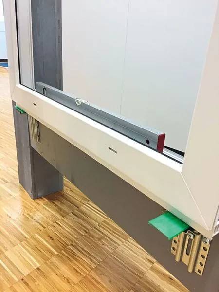 6. Schritt: Stellen Sie abschließend die Verbindung zwischen Fensterelement und Winkel unten waagerecht her. Die Montageschritte für das System JB-W/XL von SFS intec sind damit erledigt.