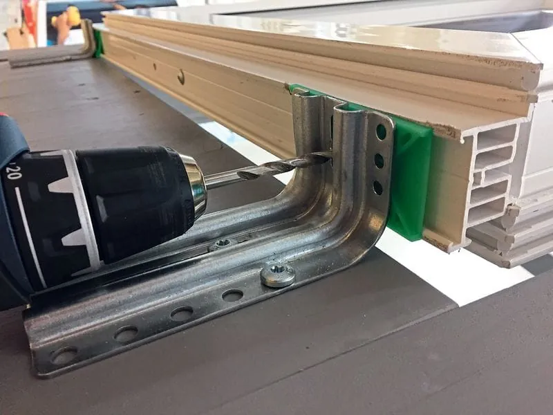 3. Schritt: Fixieren Sie die seitlichen und oberen Montagewinkel über einen Befestiger im Langloch. So ist eine Verschiebung möglich, um den Fensterrahmen individuell zu positionieren.