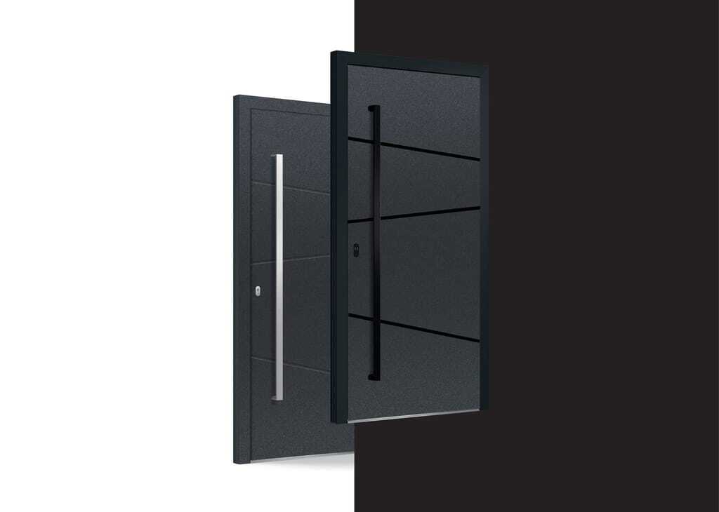 Unterstützt werde der schicke Look durch verdeckt liegende Haustürbänder im Türfalz sowie schwarze, flächenbündige Aluminiumlisenen in den Türfüllungen. Auch die Abdeckung der Fingerprint-Leseeinheit ist in tiefschwarzer Feinstruktur gehalten.
