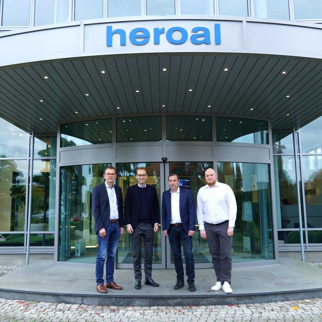 Heroal baut mit der Schirmer Maschinen auf einen starken Partner am gleichen Standort. Ludger Martinschledde, Geschäftsführer Schirmer, Dr. Max Schöne, Geschäftsführer Heroal, Roland Vogt, Mitglied der Geschäftsleitung bei Schirmer, und Kevin Meuthen, Anwendungstechniker und Fertigungsberater bei Heroal (v. li.). - © Heroal