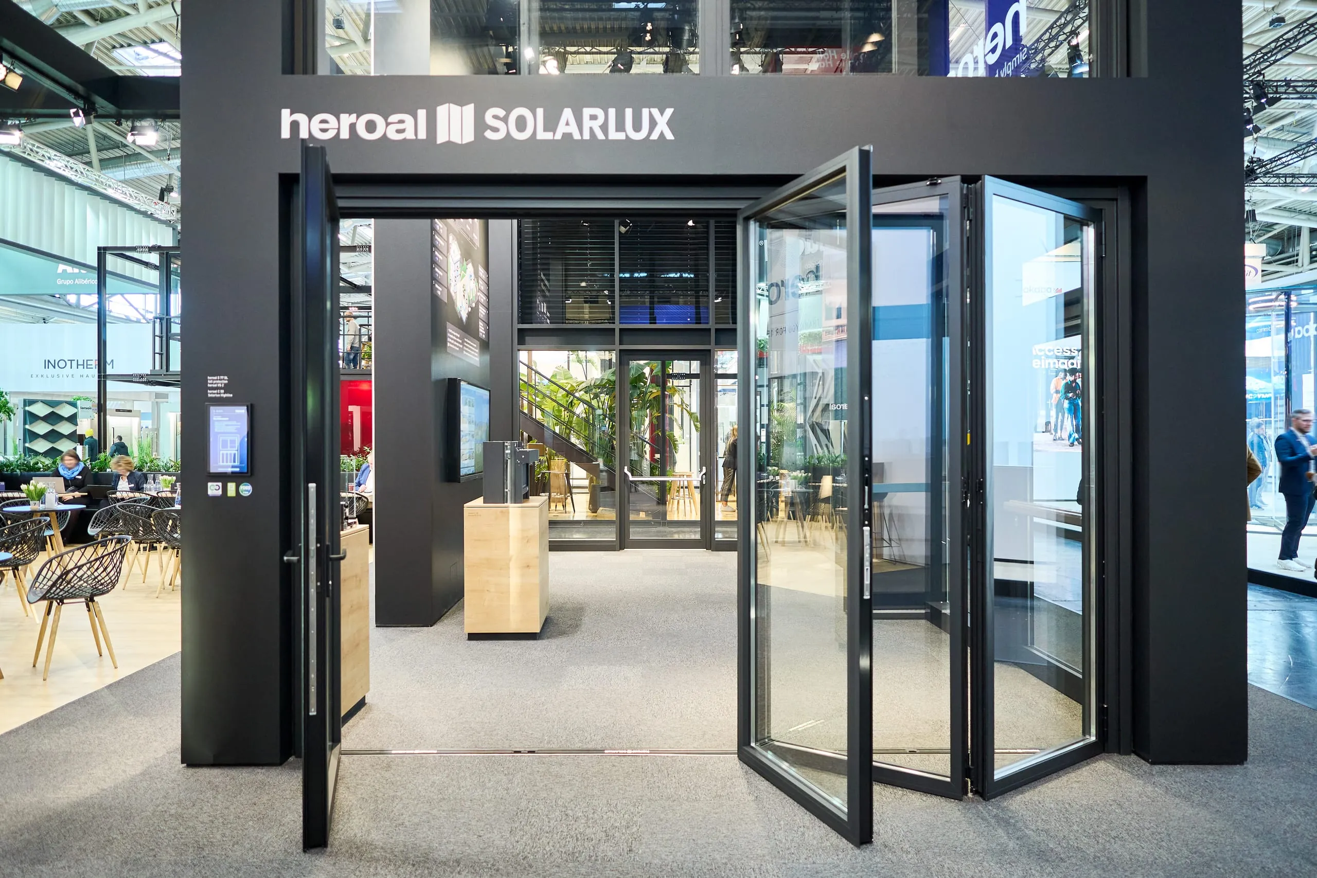 Wie gut die Produkte und Systeme technisch und gestalterisch ineinandergreifen, verdeutlicht das gemeinsame Exponat auf dem Heroal Messestand auf der Bau 2025: Hier wurde die Glas-Faltwand Highline von Solarlux in eine Pfosten-Riegel-Fassade von Heroal integriert. Dies zeigt beispielhaft, welche Vorteile die Partnerschaft der beiden Familienunternehmen für Fachhandel und Metallbaubetriebe bietet.