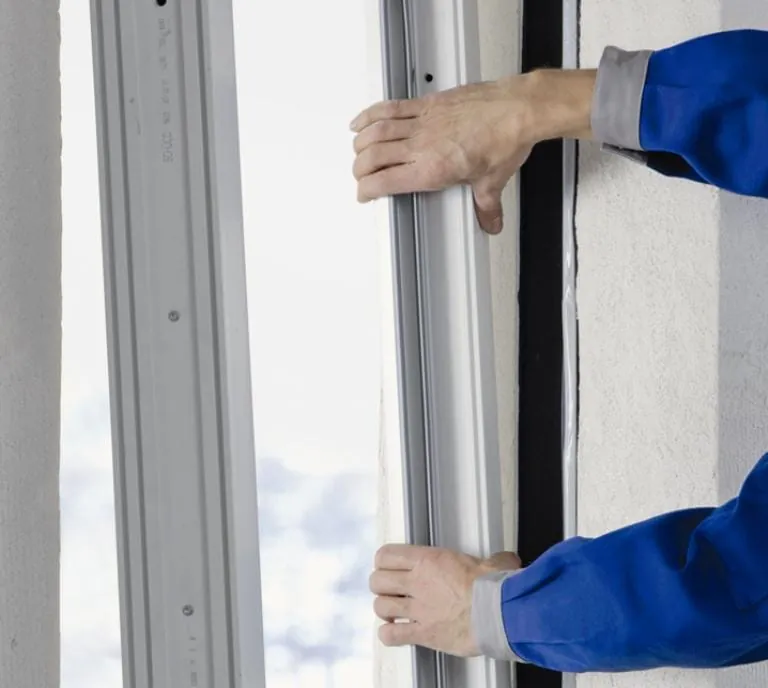 3. Schritt: Jetzt setzen Sie den Fensterrahmen in die Öffnung auf den Klebestreifen des Dichtbands und kontrollieren die richtige Position. Eine zusätzliche Abdichtfolie auf dem Rahmen ist nicht nötig. Das Band expandiert sogleich, sobald Sie es von der Rolle nehmen. Dennoch bleibt Ihnen ausreichend Zeit für die Verarbeitung – auch bei der Montage von zweiflügeligen Balkonfenstern.